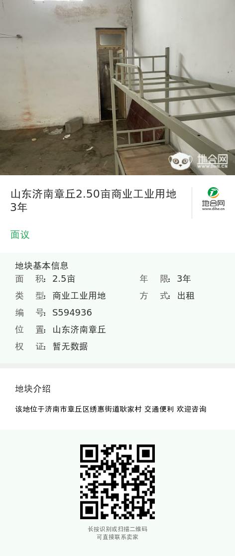 山东济南章丘2.50亩商业工业用地3年